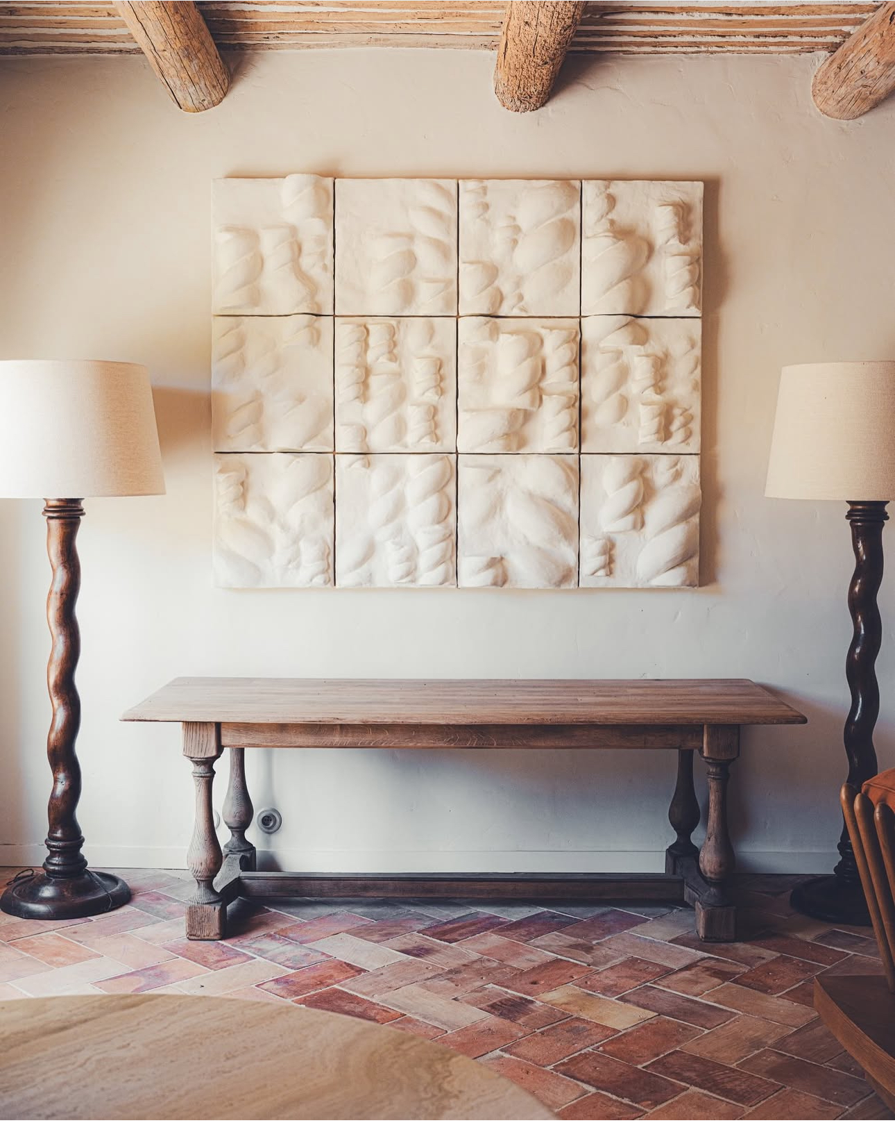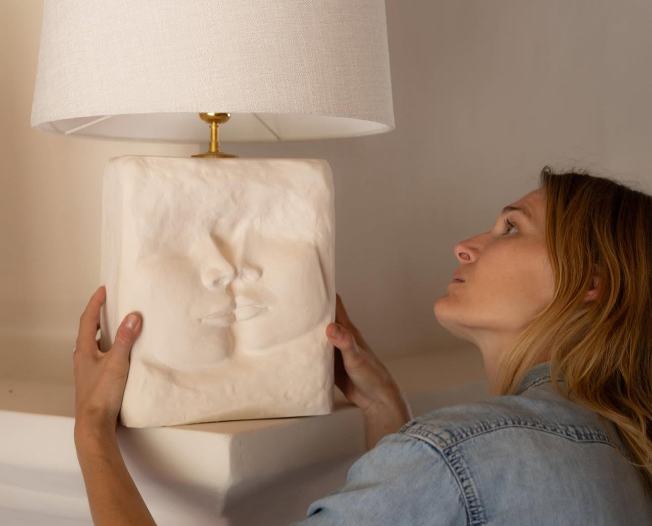 En parlant de créativité, j'ai découvert le travail de sculpture d'Aurélie en lisant un article qui lui était consacré dans le magazine M (le magazine du Monde) et pour lequel j'ai eu un gros coup de coeur. Et surtout, je découvrais qu'elle habitait dans les Yvelines à deux pas de chez moi. L'aubaine ! J'avais très envie de la rencontrer et de papoter création avec elle. Mais au moment de nos échanges elle m'apprend qu'elle vient de quitter son nid dans la forêt pour la chaleur du sud de la France. Qu'à cela ne tienne, je la suis sur son compte Instagram depuis lors. Son travail est d'une délicatesse, d'une beauté qui me touche beaucoup. La majorité de ses sculptures tournent autour de la torsade (la Babka comme elle l'appelle) sculptée dans une très dense pierre blanche chamottée et déclinée aussi bien des appliques murales que lampes à poser, ou encore en fresque murale (le dream !).
