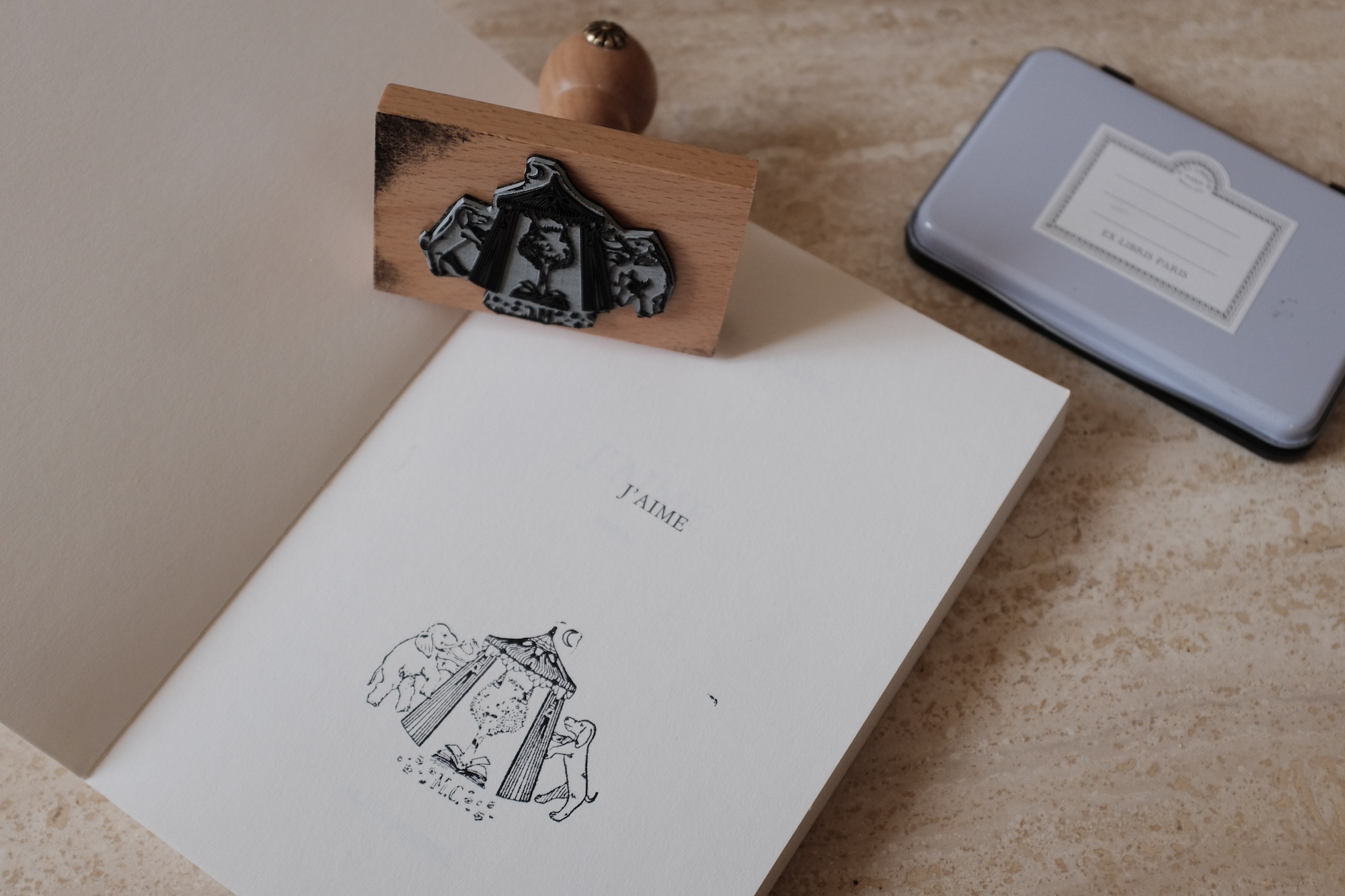 Quoi de plus chic que de pouvoir marquer ses livres avec une signature, appelée ex-libris ! J'ai découvert le travail d'Igor et Lauren il y a plus d'un an grâce à mon amie Sophie. Et me voilà, ni une ni deux, au Bon Marché, là où les deux créateurs d'Ex-Libris ont tenu un corner pendant plusieurs mois, pour aller papoter et créer ma propre signature que je me délecte de tamponner sur tous les livres de la maison depuis lors.